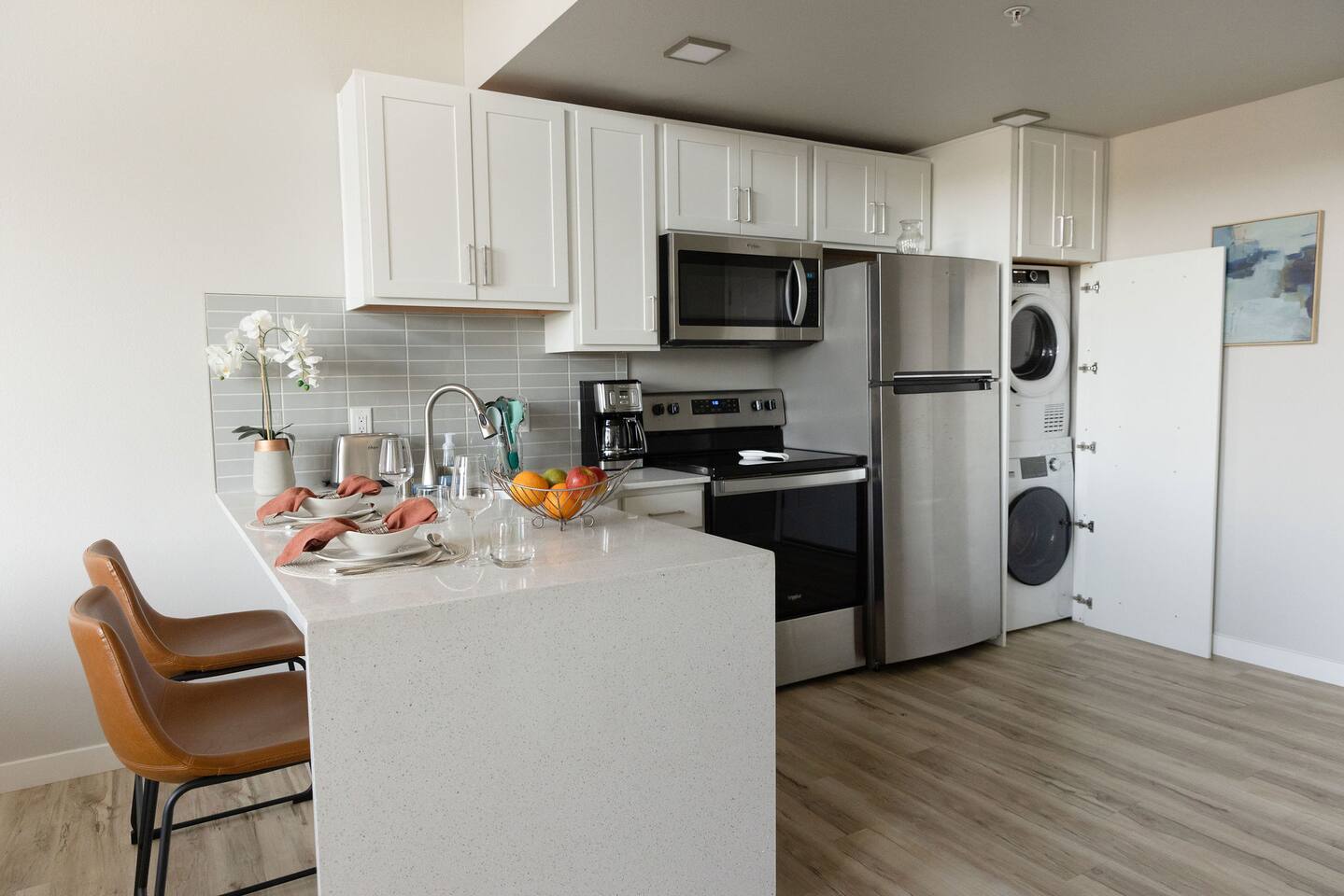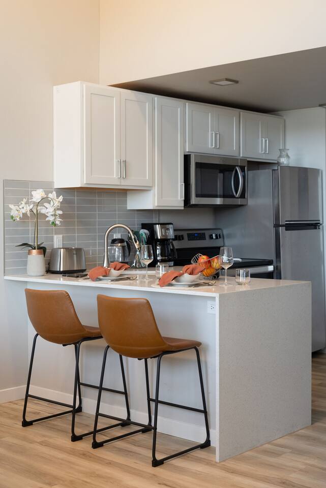 Please note, the unit is on the 3rd floor and there’s no elevator in the building. For extended stays, we provide a complimentary mid-stay clean to help keep the home feeling fresh and comfortable. Our team will coordinate the timing directly with you during your stay.