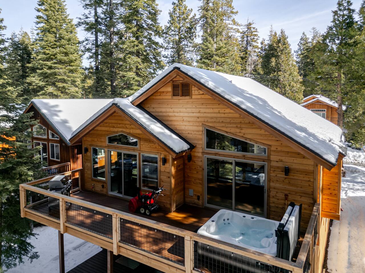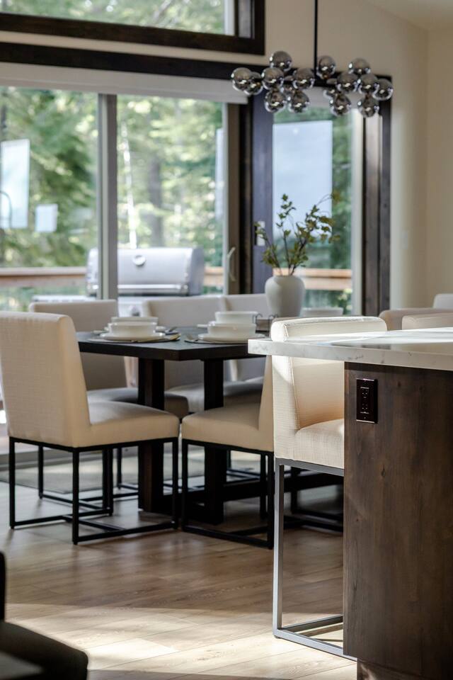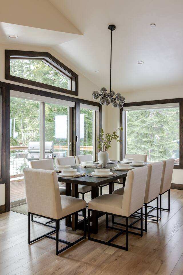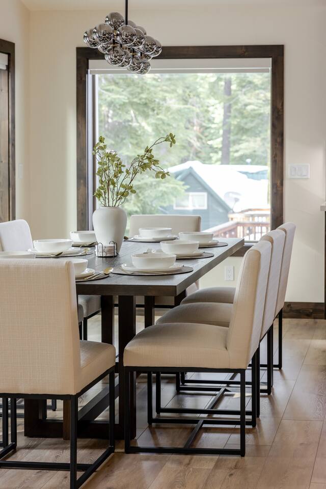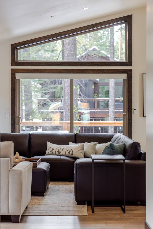 TOP FLOOR: Step into the bright and inviting living area, with a 65” Smart TV, perfect for movie nights or catching up on your favorite shows. The adjoining dining area comfortably seats 8, an ideal spot for family meals or board game marathons. A large island in the kitchen provides seating for an additional 4, making it a convivial space for morning coffee or quick bites. PRIMARY BEDROOM: -King bed with plush bedding -Extra blankets for chilly Tahoe evenings -65" Smart TV -Desk/workstation with a comfy chair -Plenty of closet space -Two robes for your comfort -En-suite bathroom: walk-in shower, dual sinks, soaking tub, complimentary toiletries, fresh towels 2ND BEDROOM: -Queen bed with plush bedding -Extra blankets -Plenty of closet space -Shared bathroom with a modern walk-in shower, sink, complimentary toiletries, fresh towels OUTDOOR DECK: -Hot tub -Grill DOWNSTAIRS: The lower level has two additional bedrooms, a full bathroom, and convenient entry from the garage. 3RD BEDROOM: -Queen bed with plush bedding -Extra blankets -Desk/workstation with a comfortable chair -Private deck via sliding glass doors -Shared bathroom with a modern walk-in shower, sink, complimentary toiletries, fresh towels 4TH BEDROOM: -Two Twin XL beds with plush bedding -Extra blankets -Plenty of closet space -Shared bathroom with a modern walk-in shower, sink, complimentary toiletries, fresh towels ADDITIONAL AMENITIES -Smart lock for easy self check-in/out -Brand-new washer and dryer -Heating and A/C thermostat -High-speed internet -Foldable desk for extra workspace -Coffee maker and electric kettle -Complimentary coffee and tea -Fully stocked kitchen with cooking utensils, cookware, knives, and more -Extra blankets, robes, and wooden hangers for added comfort -Toxin-free toiletries for a healthier stay TOXIN-FREE TOILETRIES: Our provided shampoo, conditioner, body wash, hand soap, body lotion, and dish soap are crafted with the finest ingredients, including cold-pressed argan oil from Morocco, vitamins, botanicals, and Shea butter. These toxin-free formulations are cruelty-free, vegan, organic and free of paraben, sulfate, phosphate, and gluten, for a luxurious and eco-friendly experience for our guests. LOCATION 5 min to Homewood Mountain Resort (skiing, snowboarding, summer activities) 25 min to Palisades Tahoe/Alpine Meadows (world-class ski slopes, hiking trails) 40 min to Sugar Bowl Resort (skiing, snowboarding) 45 min to Northstar California (skiing, mountain biking, village shops) 35 min to Heavenly Mountain Resort (skiing, nightlife, casinos) 5 min to Chambers Landing & Meeks Bay (beaches, kayaking, swimming) 15 min to Tahoe City (restaurants, shops, grocery stores, marina) 15 min to Emerald Bay (iconic views, hiking, photography) 30 min to South Lake Tahoe (casinos, nightlife, entertainment) 45 min to Incline Village (scenic trails, beaches, golf) 15 min to Tahoe City Golf Course (relaxed 9-hole course with beautiful views)
