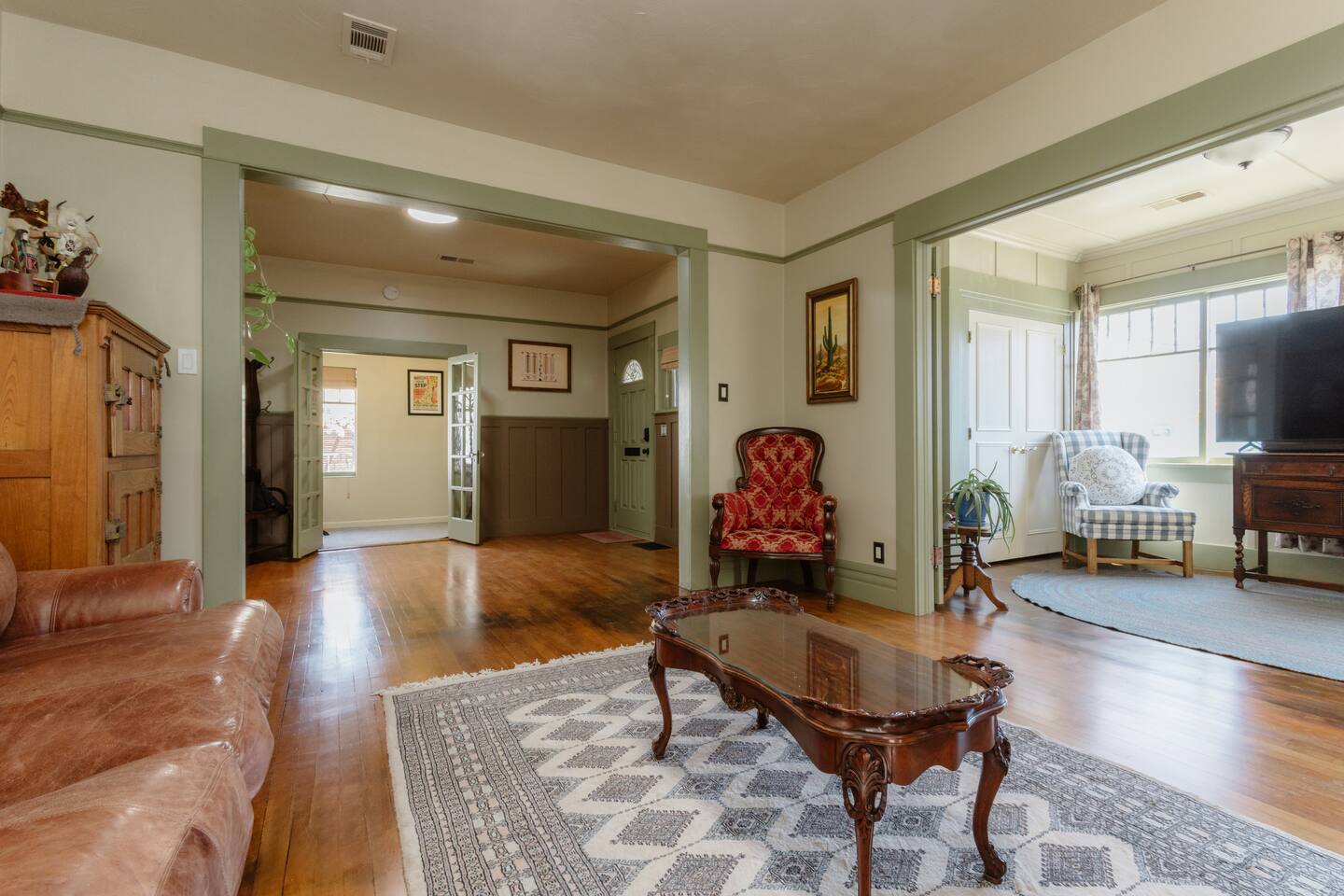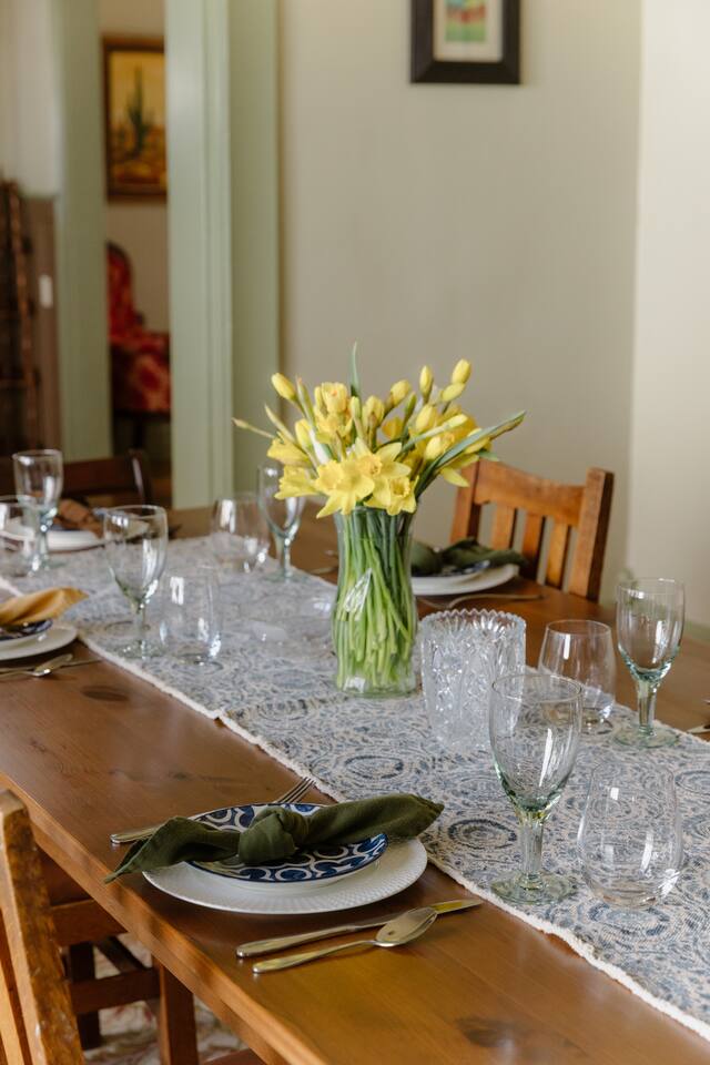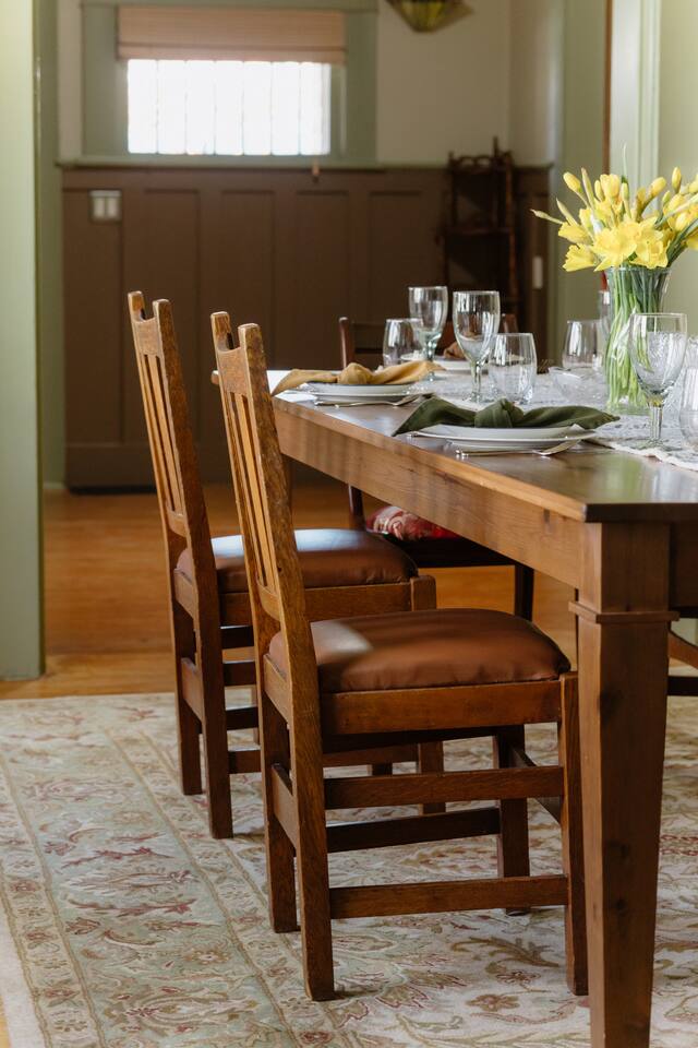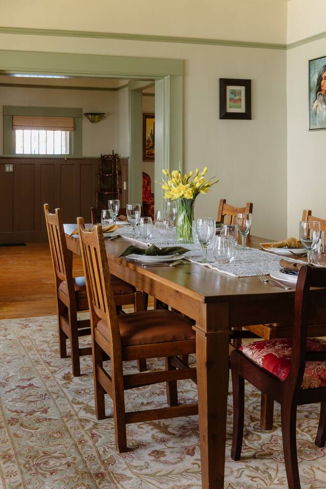 Welcome to your charm-filled home, nestled just steps from the serene and peaceful Truckee River! Step inside and experience a space filled with timeless furnishings and distinctive personality-infused pieces, creating a nostalgic charm that's perfect for a relaxing getaway. Experience the warmth and comfort of our character-filled home, tailored to provide a non-toxic haven for those seeking holistic healing during their stay. You'll immediately notice the natural hardwood flooring and framing, restored from its 1926 beginnings to offer modern accommodations while still embracing the vintage and classic aspects of the home. Each room is adorned with nostalgic furniture pieces carefully curated from a past generation, creating a charming and relaxing atmosphere. Modern amenities like the 65” Smart TV with complimentary Amazon Prime add a touch of convenience to your stay. In the center of the house, an elegant dining room invites you to gather over family dinners with friends around the large wooden table, comfortably seating 6. Prepare delicious meals in the fully stocked kitchen, equipped with sleek stainless steel appliances and plenty of counter space for culinary adventures. Each bedroom is thoughtfully designed for comfort, offering queen beds, natural and non-synthetic bedding, comfortable mattresses, and ample closet space. For those blending work with pleasure, a private office with a desk ensures productivity and convenience, with the added benefit of privacy. Important Information: Our property prioritizes a low-toxin environment, with virgin wool carpet, no VOC paint, and high-quality air filtration ensuring a safe and comfortable stay. Patients seeking holistic healing will appreciate our commitment to minimizing exposure to toxins. Toxin-Free Toiletries: Our provided shampoo, conditioner, body wash, hand soap, body lotion, and dish soap are crafted with the finest ingredients, including cold-pressed argan oil from Morocco, vitamins, botanicals, and Shea butter. These toxin-free formulations are cruelty-free, vegan, organic and free of paraben, sulfate, phosphate, and gluten, ensuring a luxurious and eco-friendly experience for our guests.