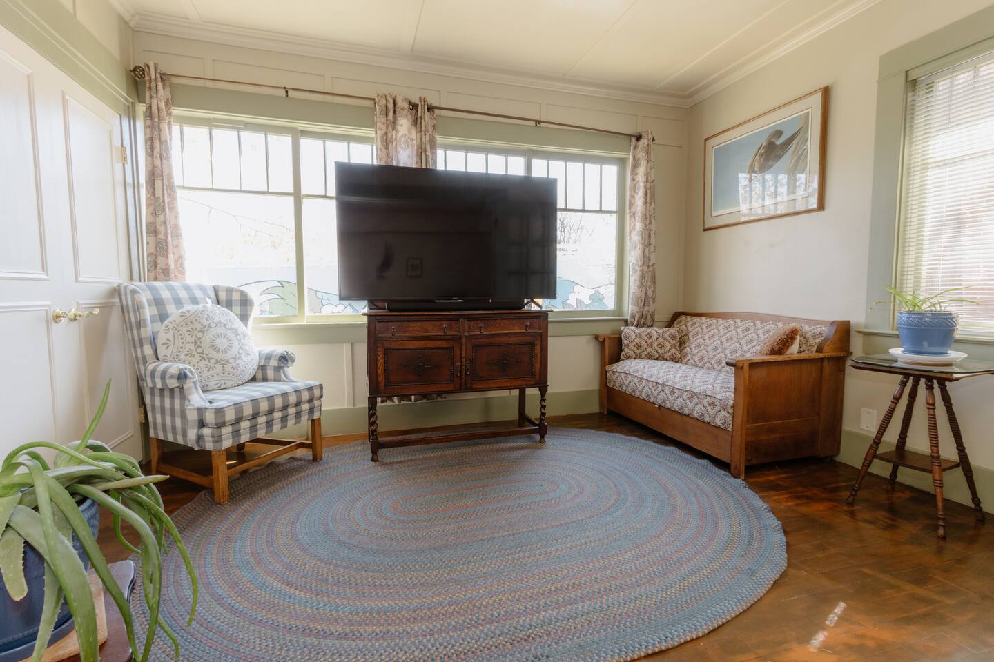 Welcome to your charming 2-bed, 1.5-bath home, a block from the Truckee River, designed with a focus on creating a low-toxin environment. Step into a space filled with vintage décor and character-filled pieces, ensuring a nostalgic charm while prioritizing your well-being. With 1550 sq ft of space, it's perfect for a rejuvenating stay. Enjoy modern amenities, a large 65" smart TV and a fully stocked kitchen. Conveniently located minutes from Downtown, Midtown, UNR, and plenty of free parking.