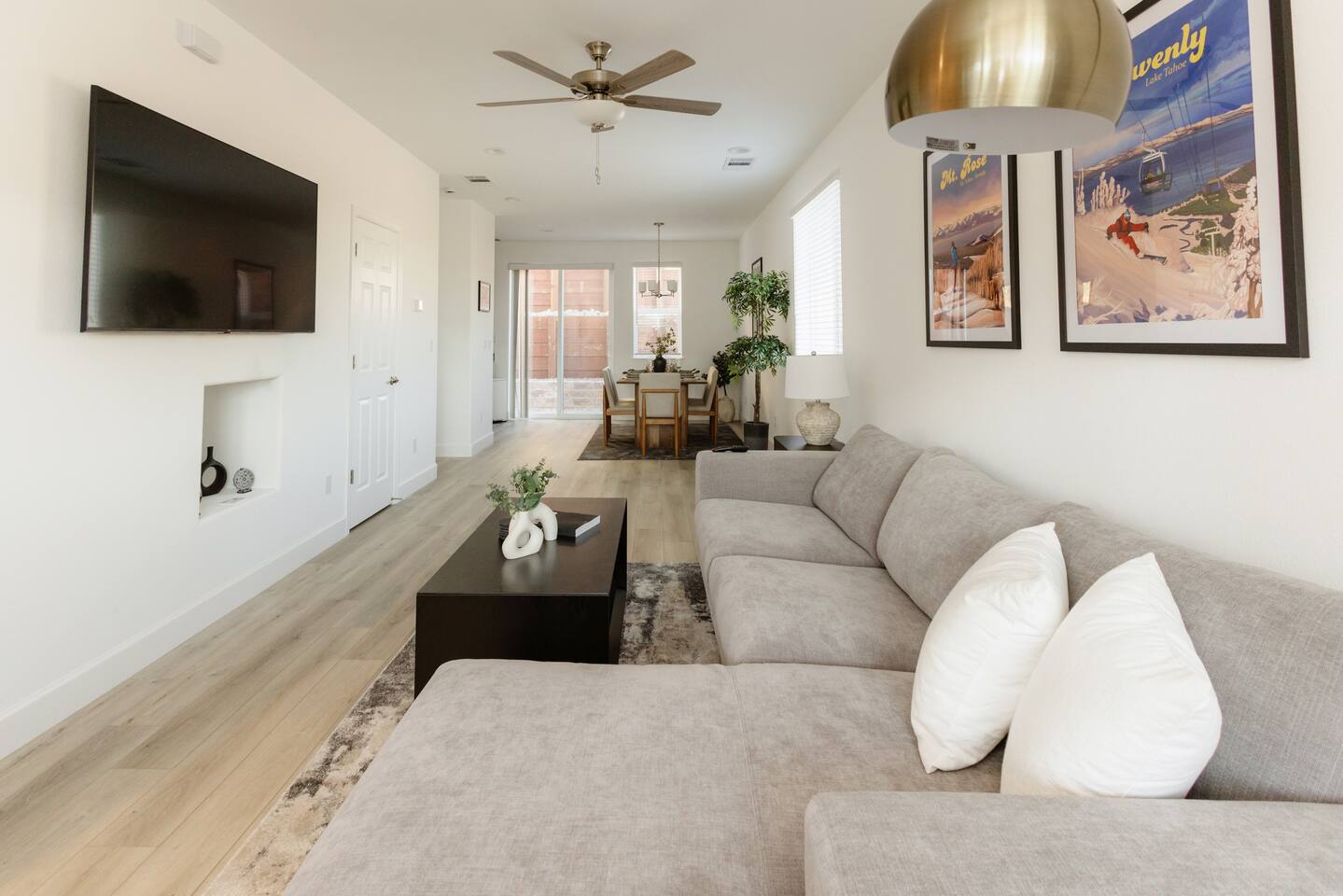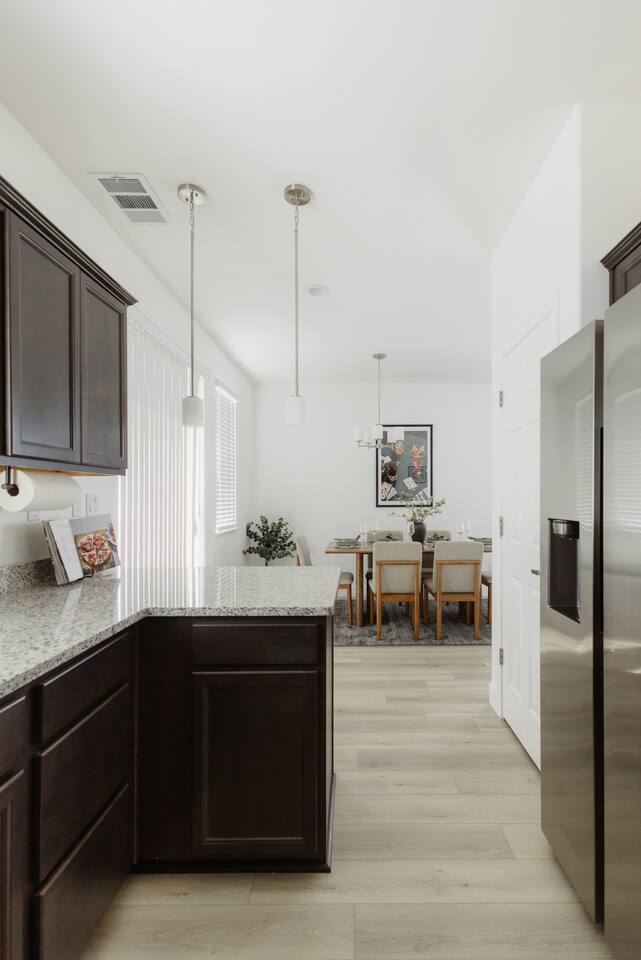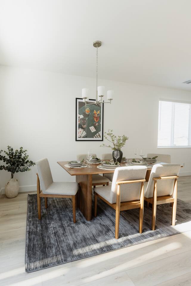 Welcome to your new home away from home! This peaceful retreat is just minutes from Highway 395, offering a blend of modern comfort and style, ideal for a relaxing escape. ::First Floor:: Our modern 3-bedroom, 2.5-bath home is the perfect fully furnished monthly rental. We pride ourselves on making this feel like home. As soon as you enter, you'll be greeted by a stunning living room featuring a plush and stylish couch and side chair. The vibrant living room has modern decor and a large 65 LG Smart TV, which provides access to various streaming apps using your personal logins. Moving further into the home, you'll discover an elegant dining room with a brand new hardwood table and six chairs, ideal for family dinners or hosting friends. The dining room seamlessly connects to the kitchen, which is fully equipped with modern countertops and brand new stainless steel appliances, including a fridge, dishwasher, toaster, coffee pot, and tea kettle. The kitchen is stocked with everything you need, from brand new plates and cups to silverware and cooking essentials. Step outside to the private patio and relax on the plush new furniture while enjoying your morning coffee and taking in the breathtaking mountain views. This spacious home features a contemporary design with plenty of natural light, making it the perfect retreat. ::Second Floor:: Primary Bedroom (1) King bed (sleeps 2) with plush luxury bedding Private master bath: double sinks, walk-in shower, and soaking tub Complimentary toiletries Ample closet space Full-size dresser Full-length body mirror Guest Bedroom (2) Queen bed (sleeps 2) with plush luxury bedding Work desk and chair Ample closet space Shared bathroom with shower (complimentary toiletries included) Guest Bedroom (3) Two Twin XL beds (sleeps 2 adults or 2 kids comfortably) Plush bedding Ample closet space Shared bathroom with shower (complimentary toiletries included) Dresser Laundry Room Brand new LG washer and dryer ::Neighborhood:: Nestled in a quiet and charming neighborhood, this brand new home offers amazing views of the surrounding mountains. Enjoy easy access to nearby hiking trails and paths, perfect for outdoor enthusiasts. The house is situated at the end of the street with minimal neighbors, providing a peaceful and private atmosphere. With just a 5-minute drive to Highway 395 and 10 minutes from the junction of Highway 395 and I-80, you'll find it easy to explore the town and enjoy all the local attractions. ::Toxin-Free Toiletries:: Our provided shampoo, conditioner, body wash, hand soap, body lotion, and dish soap are crafted with the finest ingredients, including cold-pressed argan oil from Morocco, vitamins, botanicals, and Shea butter. These toxin-free formulations are cruelty-free, vegan, organic and free of paraben, sulfate, phosphate, and gluten, ensuring a luxurious and eco-friendly experience for our guests. LOCATION 40 min to Lake Tahoe 25 min to Tesla Gigafactory 25 min to Mt. Rose Ski area 25 min to Virginia City 25 min to Carson City 10 min to Airport 10 min to Downtown Reno/Casinos 10 min to Downtown Sparks 5 min to Gym/Fitness Centers Movie Theatre Restaurants Golfing Premier Shopping Numerous parks in the area Lots of sidewalks and walking paths in the area Hiking trails within 15 min.